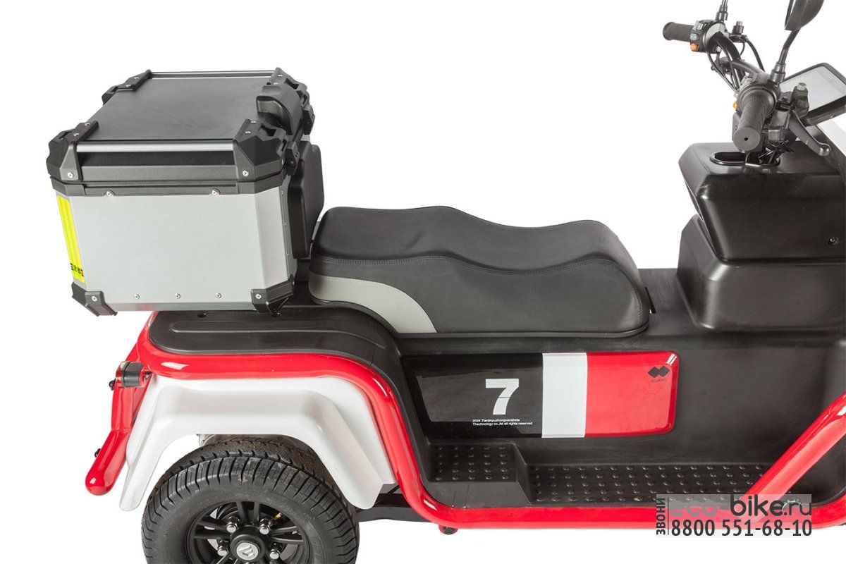 • Нагрузка до 190 кг: Электротрицикл способен выдерживать нагрузку до 190 кг, что подходит как для одного человека, так и для небольшого груза.